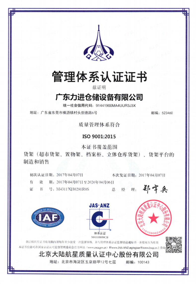 ?2016年5月    更名為廣東力進倉儲設(shè)備有限規(guī)公司,搬遷至東莞市橫瀝鎮(zhèn)村頭工業(yè)區(qū),占地面積12800平方米。
